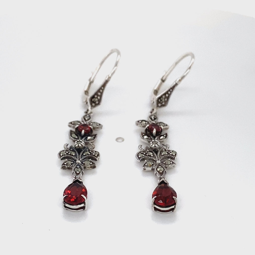 Sterling Silver Antique style Pear Garnet claw set drop Earrings
