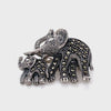 Sterling Silver Mother and Baby Elephant, Marcasite Brooch with roller catch clasp.