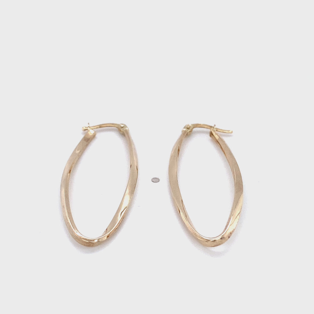 9ct Yellow Gold curved oval Hoop Earrings, 40 x 2mm (last pair)
